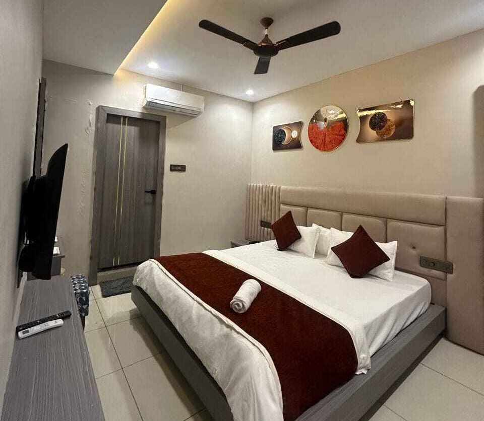 Indulge in comfort and style with our thoughtfully designed Deluxe Room at Hotel Rajshree INN. Perfect for couples, business travelers, or guests who appreciate extra space, this room offers a relaxing ambiance with modern interiors and premium amenities. Enjoy a restful night’s sleep on plush bedding, stay cool with efficient air conditioning, and make use of our free high-speed Wi-Fi to stay connected.